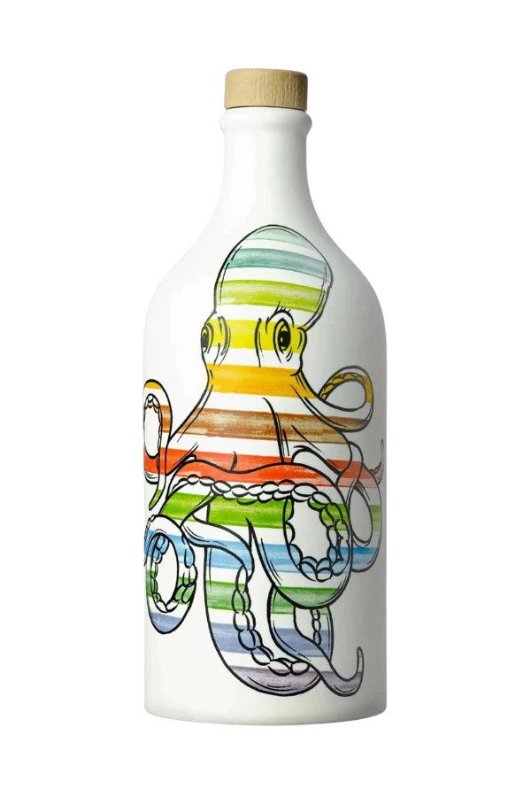 The Octopus Jar is one of Frantoio Muraglia’s most iconic creations. Hand-painted on a bright white background, it blends the energy of Mediterranean colors with the mastery of Puglian craftsmanship.